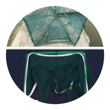 Folding shrimp/yabbie trap. 6 entrance holes, great for catching live bait for fresh and salt water. Circular in shape and folds flat for easy transport. I use a special bait (which I'll share) in these nets and have great success in catching shrimp, yabbies and small fish all perfect for live bait fishing.